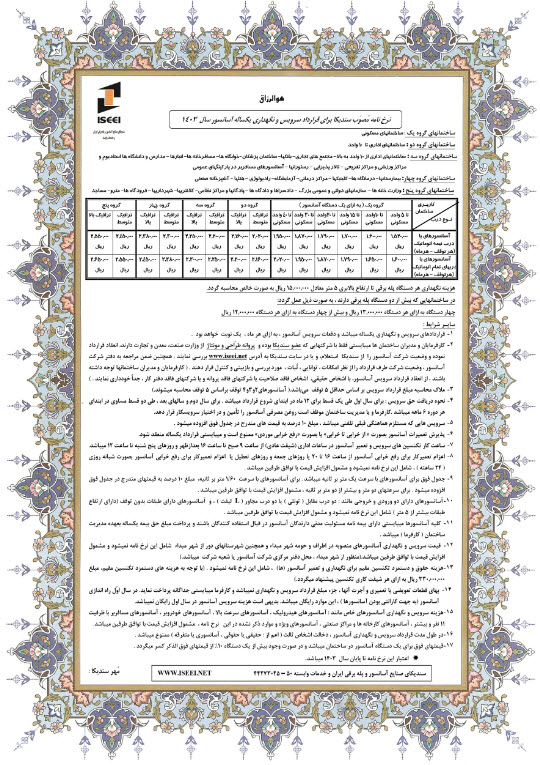نرخ نامه سال 1403 شرکت آسانسور راجی